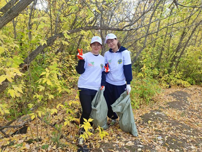 Студенты Карагандинского университета Казпотребсоюза активно поддержали экоакцию. Они очистили зелёную зону возле вуза.