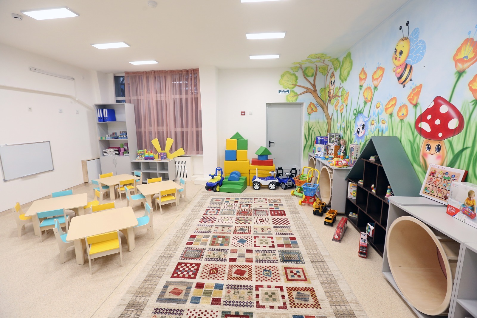 В приоритете и безопасность детей: внедрена система пожаробезопасности, есть специальные датчики оповещения. Также проведено сейсмоусиление здания. В подвальной части размещены водомерный и тепловой узлы, вентиляционная камера и электрощитовая.