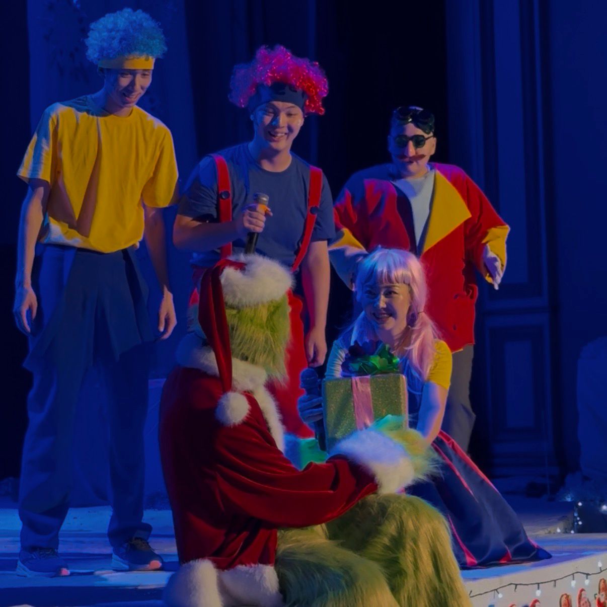 Ертеңгілік барысында Шымкент жастар театрының шығармашылық ұжымы дайындаған «Ұрланған жаңа жыл» атты музыкалық ертегі қойылымы сахналанды. Аяз ата мен Ақшақар, сондай-ақ балалардың сүйікті кейіпкерлері – Чики, Чача, Бумбум, Ляля, Уэнсдей, Соник, Гринч сынды образдар кішкентай көрермендерді ертегі әлеміне жетеледі.