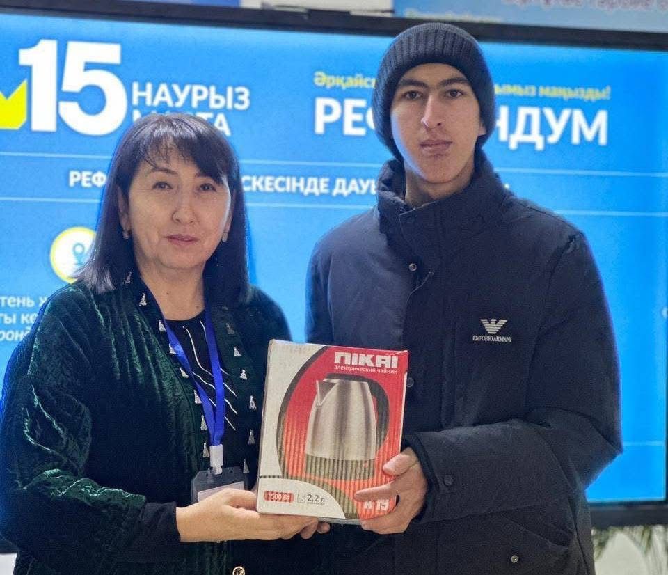На участке референдума №881 г. Туркестан избиратель, достигший 18-летнего возраста, впервые проголосовал и сделал свой выбор. Это первое участие молодого избирателя в важном общественно-политическом событии в стране. Также на участке референдума №324 в Келесском районе свой выбор сделал 18-летний избиратель. Одной из особенностей референдума в этом году является большое количество молодых людей, которые голосуют впервые. По Туркестанской области впервые проголосуют 37 796 молодых людей. Кроме того, именно 15 марта 135 подростоков, достигнут совершеннолетия, и впервые сделают свой выбор на референдуме.