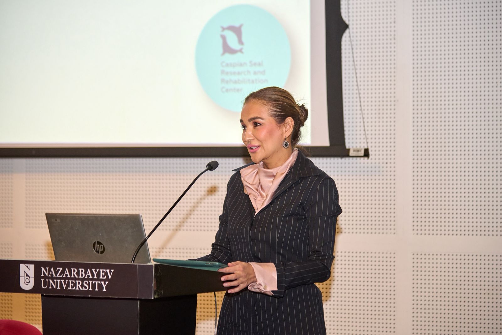 Марапаттау рәсімі аясында амбассадорлар дәрістер оқыды. Әсел Тасмағамбетова Каспий итбалығының экожүйедегі рөлі, негізгі экологиялық бастамалар және өңірдегі табиғи тепе-теңдікті сақтау үшін күш біріктіру қажеттігі туралы баяндады.