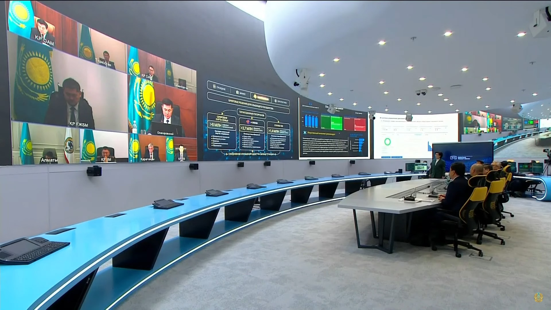 Министрдің айтуынша, деректер eOtinish, 109 қызметімен, Отбасының цифрлық картасымен біріктірілген. Жасанды интеллект әлеуметтік осал санаттар бойынша жүгіну салаларын таңдайды. Бұл сотқа дейінгі іс жүргізу, қоғамдық және жол қауіпсіздігі, тұрғын үй-коммуналдық шаруашылық мәселелері, жерге және жерді пайдалануға, сот ісін жүргізуге қатысты мәселелер.