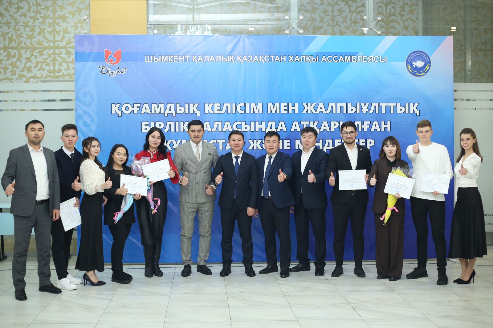Жиын соңында басқарма басшысы Айгерім Жұмағұлова қала аумағында қоғамдық келісім мен жалпыұлттық бірлікті бекемдеуге үлес қосқан этномәдени бірлестіктердің төрағалары мен өкілдеріне, қалалық ассамблея жанындағы қоғамдық құрылымыдардың мүшелеріне және «Ассамблея жастары» ұйымының белсенділеріне қала әкімінің Алғыс хатын табыстады.