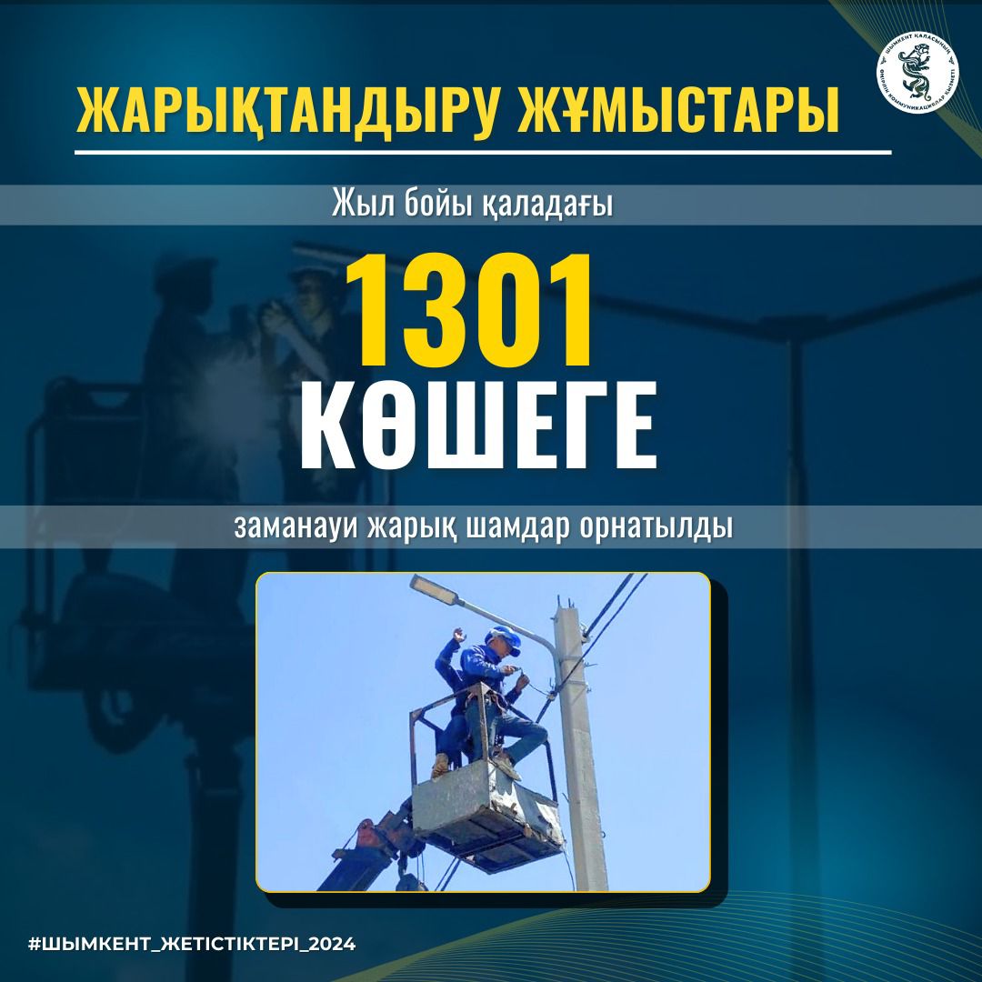 Шымкент қаласында жол инфрақұрылымын жақсарту және тұрғындарға қолайлы жағдай жасау мақсатында 2024 жылы ауқымды жарықтандыру жұмыстары атқарылды. Жыл бойы қаладағы 1301 көшеге заманауи жарық шамдар орнатылып, түнгі уақыттағы көшелердің жарықтандырылуы айтарлықтай жақсарды, деп хабарлайды No-comment.kz ақпараттық агенттігі.