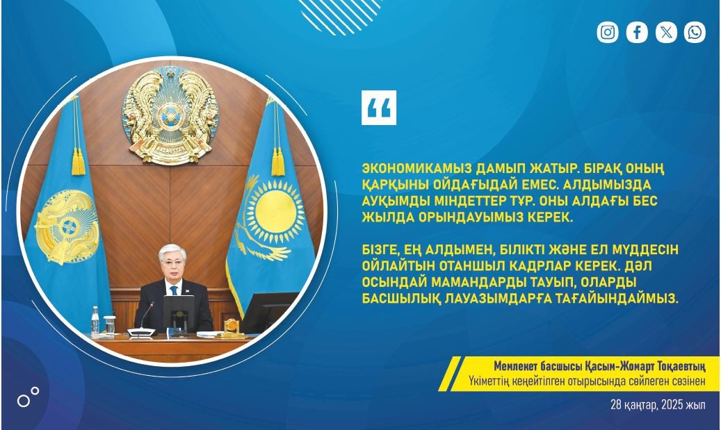 – Бұл – жыл сайын дәстүрлі түрде өтетін өте кең форматтағы басқосу. Жиында Үкімет мүшелерінің алдағы жылы атқаратын қызметінің негізгі бағыт-бағдарына басымдық беріледі. Сондықтан кеңейтілген отырыстағы Президенттің кез келген тапсырмасы мен бастамасы еліміздің дамуы үшін аса маңызды. Қасым-Жомарт Кемелұлы саясаттағы ұтқырлықты әлеуметтік-экономикалық дамудағы нақты қадамдармен үйлестіруді жөн санайды. Яғни, түбегейлі өзгерістерге жол ашқан реформалардың орындалуы еліміздің әл-ауқатынан да көрініс табуға тиіс. Осы ретте бір жыл бұрын жаңадан жасақталған Үкіметке өте үлкен жауапкершілік жүктеліп отыр. Өйткені Президентіміз айтқандай, қазіргі кезең жаһан жұртшылығына жеңіл тиіп отырған жоқ. Ірі державалар арасындағы әртүрлі текетірес, соның ішінде экономикалық санкциялар саясатын күшейту, әр жерде маздаған кикілжіңдер мен бейбіт тұрғындардың мазасын қашырған қарулы қақтығыстар бүгінде әлем елдерін қатты алаңдатады. Сондай-ақ соңғы жылдары климаттық өзгерістер де анық байқала бастады. Технологиялық жарыс нәтижелері бұрын-соңды болмаған бәсекелестік тудырды. Міне, осы іспетті сын-қатерлер елімізді барлық салада бетпе-бет келетін күрделі күрмеулерді дер кезінде, тіпті алдын ала шешіп отыруға міндеттейді. Шиырып айтқанда, көрпеге қарай көсілетін уақыт келді. Мемлекет басшысы бюджет қаражатын оңтайлы жұмсау, мемлекеттік құрылымның тиімділігін арттыру, артық шығынды болдырмауға баса мән беру керегін қадап айтты. Президент баяндамасының негізгі жүлгесі осыған саяды.