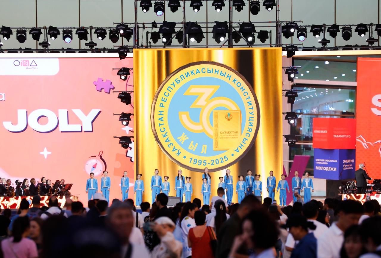 В Алматы на площади Абая состоялся четырехчасовой праздничный концерт, посвященный 30-летию Конституции Республики Казахстан. Мероприятие началось с исполнения Государственного Гимна.