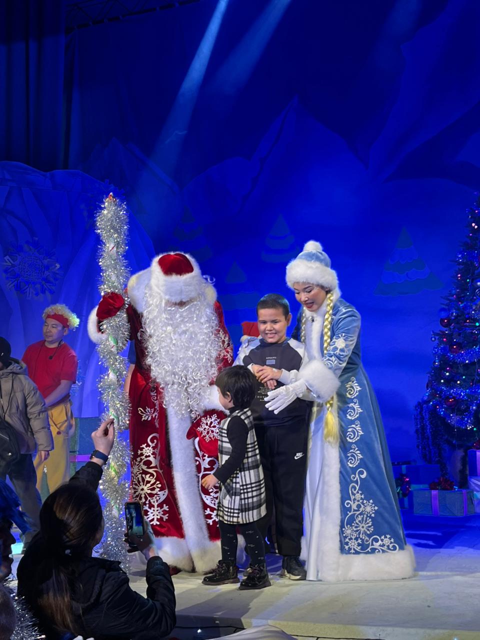 В рамках программы творческий коллектив Шымкентского молодёжного театра представил музыкальную сказку «Украденный Новый год». Дети с радостью встретились с Дедом Морозом и Снегурочкой, а также с любимыми персонажами — Чики, Чача, Бумбумом, Лялей, Уэнсдей, Соником, Гринчем и другими героями, которые увлекли их в волшебный сказочный мир.