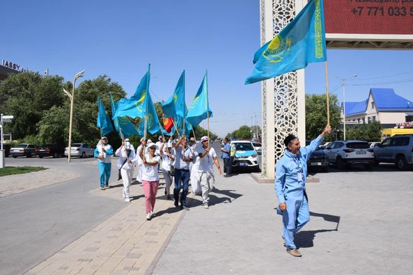 Алдымен түрлі этнос өкілдерінен жиналған 30-ға жуық марш қатысушысы Түркістандағы Қ. А. Ясауи маңындағы саябақта көк туды көкте желбіретіп, салтанатты түрде жүріп өтті. Бұдан соң ашық аспан астында арнайы ұйымдастырылған мерекелік іс-шараны тамашалады.